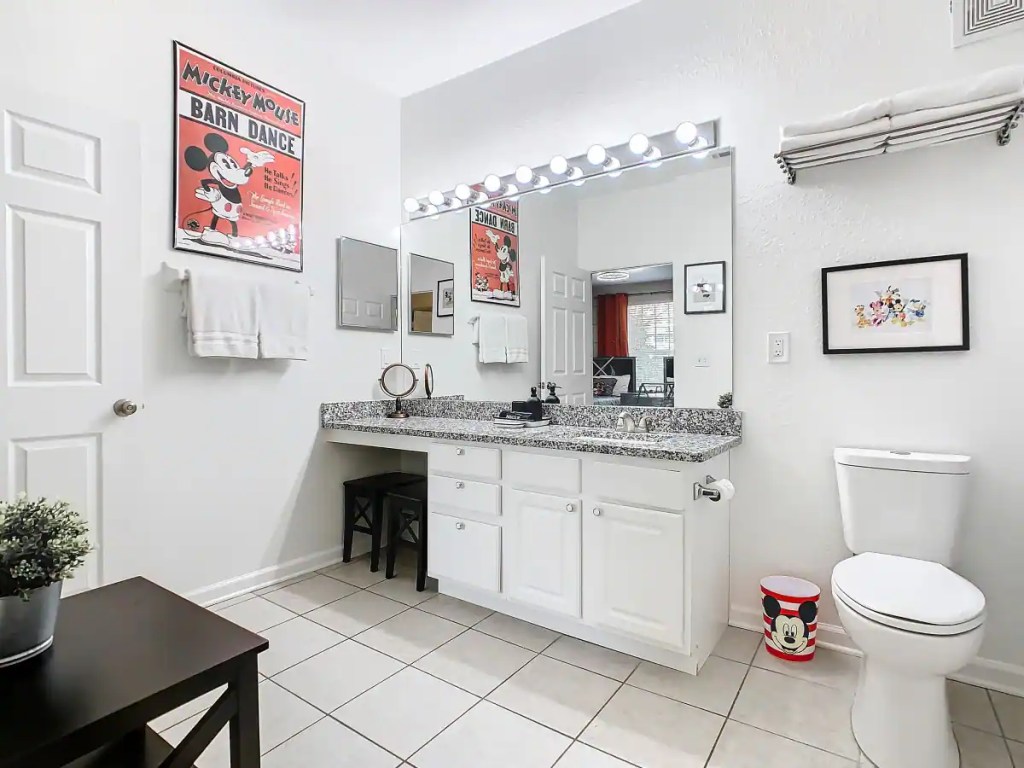 This stunning 3-bedroom, 2-bath condo beautifully blends mid-century charm with enchanting Disney-themed rooms, creating a whimsical atmosphere for guests of all ages. Just 2.5 miles from the Disney World Main Gate, it’s the ideal haven for families and friends looking to make magical memories together.